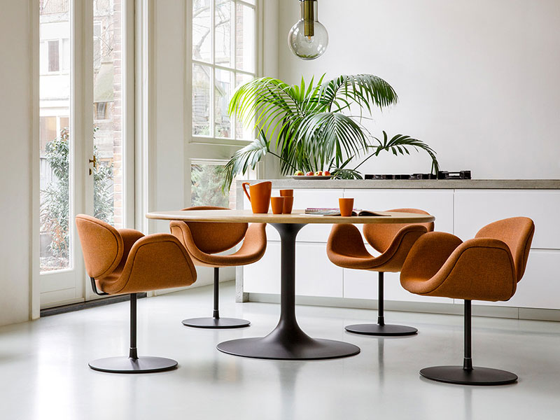 就像是一朵盛開的花。不僅有美麗優雅的外表、尺寸較其他系列小,其呈現出的實用、舒適度更是不容忽視。精緻的扶手設計搭配上不同的腳座,讓Little Tulip椅可以完美適應至各種環境。不管是家庭使用或辦公室、咖啡廳、店面等公開場合都非常適合。