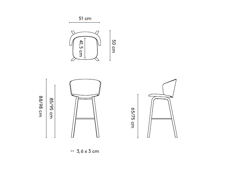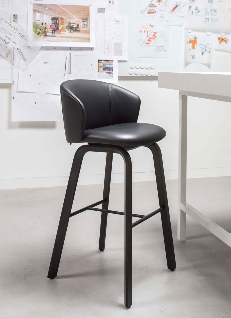 比起標準尺寸的Close椅系列,整體尺寸稍微縮小了點的Close Bar Stool是款具有靠背的吧檯椅。