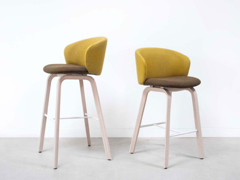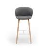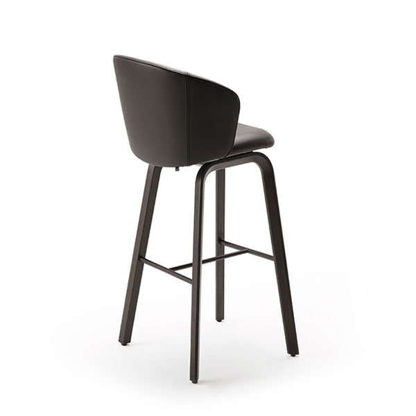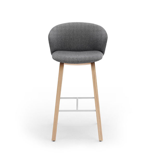 Close Bar Stool座位高度有兩款:65cm 或 75cm,不管是短期的非正式會議或站立式和有高位座椅交織在一起的工作場合、餐館及酒吧或家用皆非常適合。腳座為橡木材質,提供多種木染色座選擇。腳撐部分則使用金屬鋼材質,淺灰色或黑色兩種選項。且座椅面料選擇豐富,除了布料之外還有皮革款可依風格需求、使用位置所導向設定。是款能良好配合所有環境需求的吧檯椅。