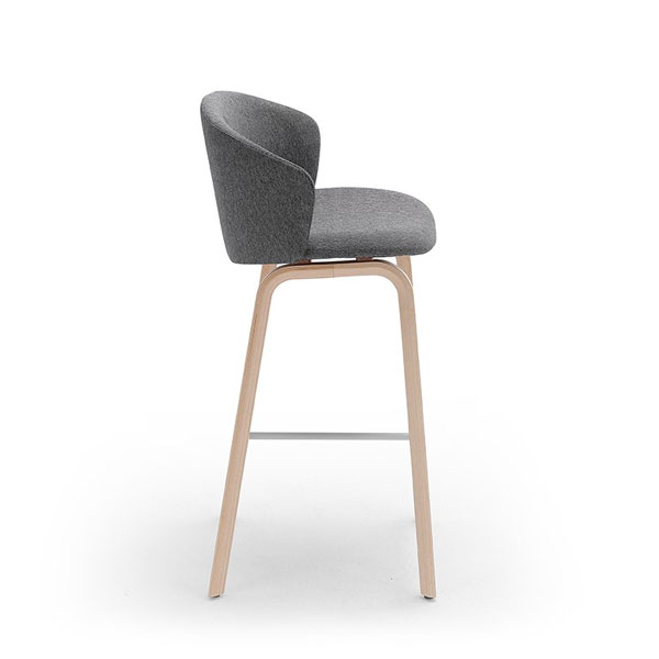 一樣是側面看略帶傾斜的圓形靠背提供了高度的舒適感,並增加了整體吧檯椅的穩定及安全感。以簡約的流線型環抱扶手設計之下,塑造了一個極具私人的座位空間感、同時還能良好的放鬆手臂。