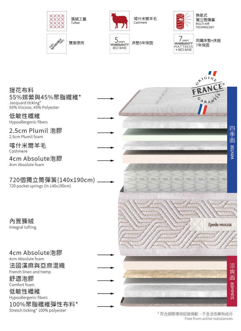 - Standard 100 by OEKO-TEX® 的認證床墊 (認證編號:CQ 1125/3 IFTH)