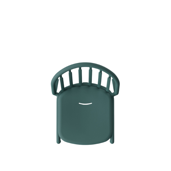 椅座上微笑形的開口設計,可以確保雨水從上流下,因此無需在每次下雨後將其擦乾。靠背的平整化設計,以便背部舒適貼合。不需使用時,還可輕鬆堆疊以節省空間。