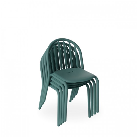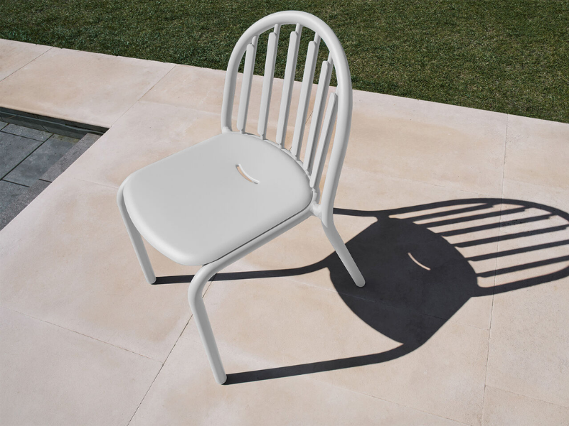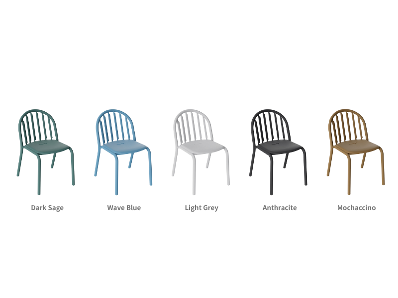 椅座上微笑形的開口設計,可以確保雨水從上流下,因此無需在每次下雨後將其擦乾。靠背的平整化設計,以便背部舒適貼合。不需使用時,還可輕鬆堆疊以節省空間。