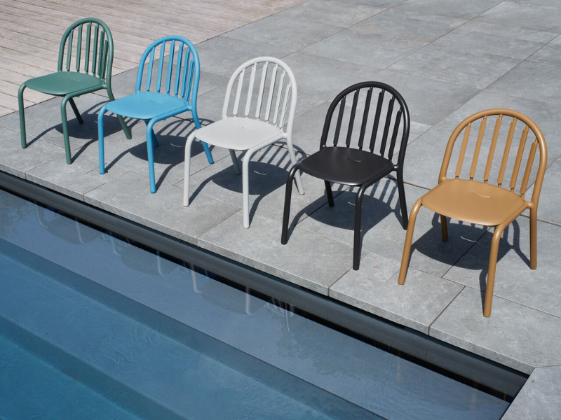 Fred's Armchair戶外扶手椅可以選擇。彎曲的椅座造型,有著更佳的乘坐感。