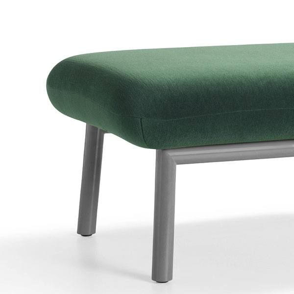 腳座是以高品質的粉體烤漆上色的金屬腳。因應磁磚地面或在地毯上可能不平,可從腳座的調整設計去達到水平,完全不需要擔心會因地面不平整而造成使用時搖晃。整體弧形的設計風格適用於具有高度彈性及柔軟的面料選擇。