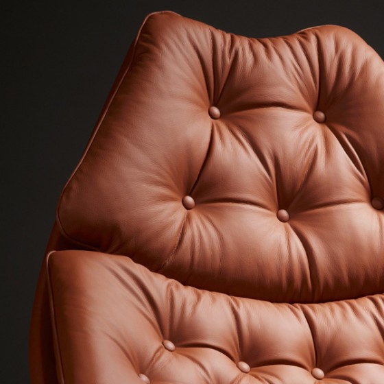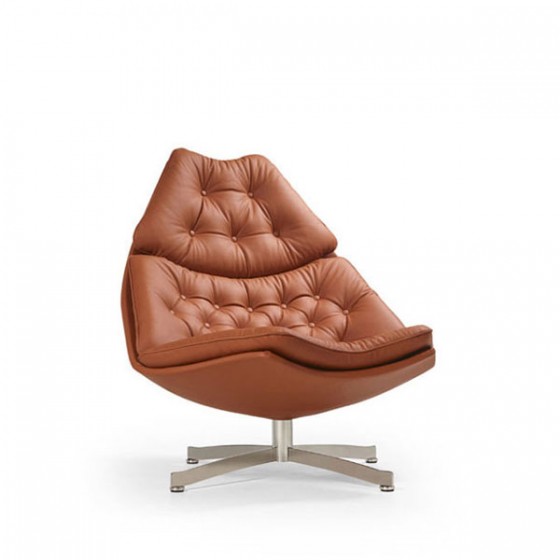 F587-F588 Swivel Lounge Chair休閒椅在F510系列舒適寬大的座椅設計基礎下,加入了釦飾的額外裝飾性巧思。讓視覺效果中帶有更多復古、精緻感。