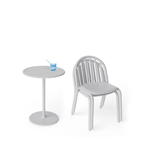 小圓桌底座下方的可調節水平,在不平整的地面上也能保持水平,椅子可疊起來不占空間。如果您想長期放置於戶外,也完全沒問題,因為 Fred's 系列是一款耐候性極佳的戶外餐桌!