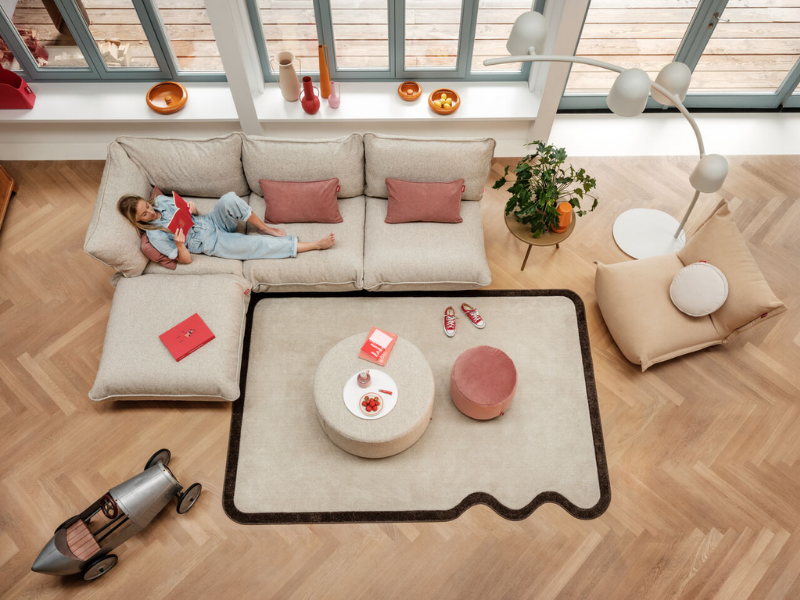 Not Straight 地毯的圓角和波浪形邊緣賦予地毯獨特的造型,設計感十足,既能柔化地面,又不失個性
