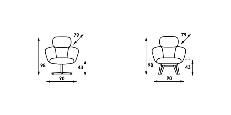 圓潤的形狀除了讓視覺上有趣,其設計想法是為了讓手臂能夠舒適的放鬆、利用獨特的扶手曲線輕鬆支撐我們的手臂。從座椅、靠背和扶手連接在一起凸顯輕盈而特別的風格呈現。因其不同區域的單獨設計也使得整體多了溫暖感不顯單調,同時也加強了人體背度與靠背軟墊的接觸空間。