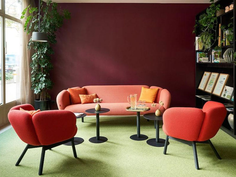 圓潤的形狀除了讓視覺上有趣,其設計想法是為了讓手臂能夠舒適的放鬆、利用獨特的扶手曲線輕鬆支撐我們的手臂。從座椅、靠背和扶手連接在一起凸顯輕盈而特別的風格呈現。因其不同區域的單獨設計也使得整體多了溫暖感不顯單調,同時也加強了人體背度與靠背軟墊的接觸空間。