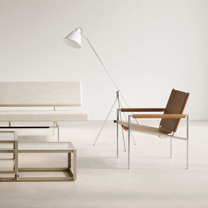 BR02沙發床、SZ02馬鞍皮革椅和SE07餐椅為同系列產品,透過座位區的設計氛圍及腳架的俐落且取直線條可以清楚的感受到Martin Visser的個人設計特色。