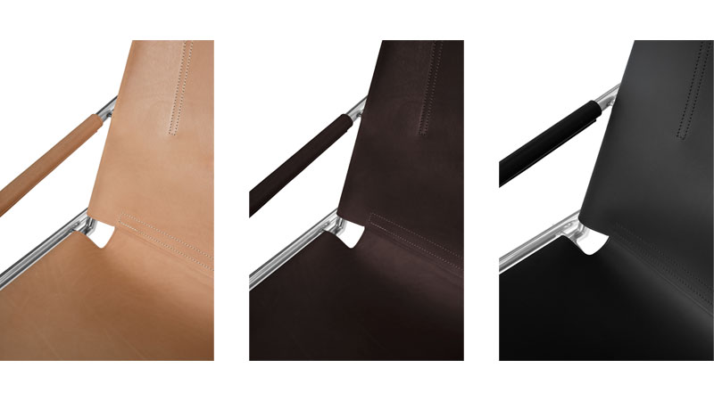 SZ02使用堅固且硬的馬鞍皮革,能夠直接使用並不需要額外提供任何支撐。這款美麗的天然皮革會在經年累月的使用上緩慢的變形,因此特別設計了在椅座下方及後背部分增加了控制的皮革帶扣設計。透過重新擰緊座椅及靠背的部分讓整個SZ02休閒椅充滿功能細節。並採用人體工學設計座椅角度,提供高度的舒適及放鬆的體驗。