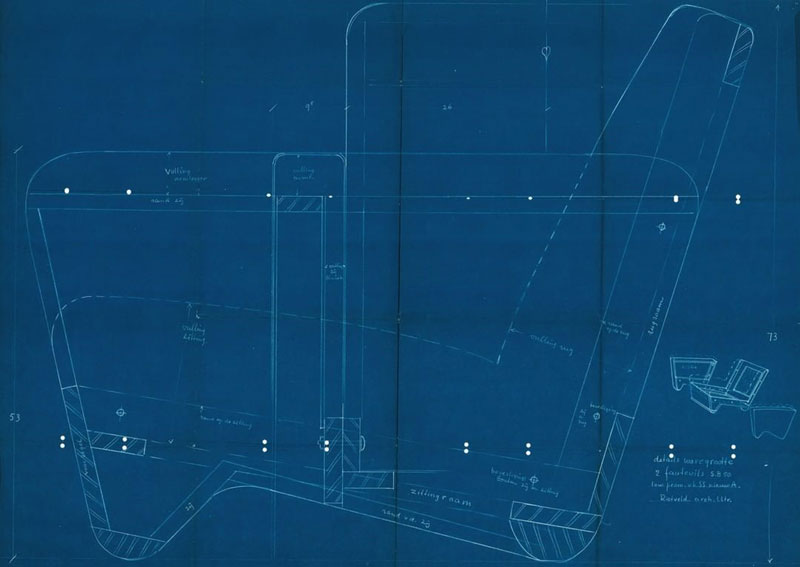 不僅設計建築;世界著名的《Rietveld Schröder House施羅德住宅》。在這個建築裡並沒有所謂牆的存在,一切都是動態的可變動開放區域。