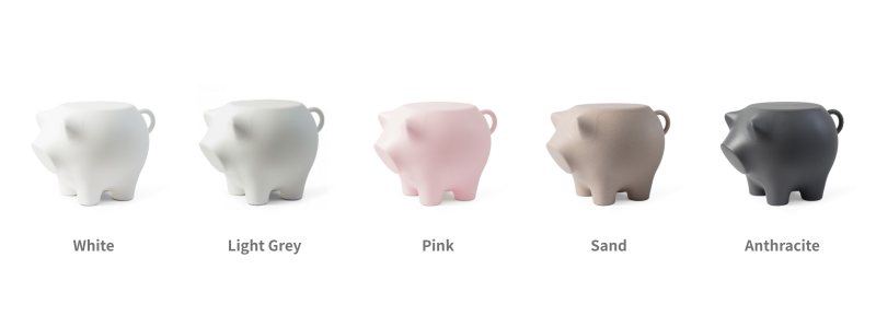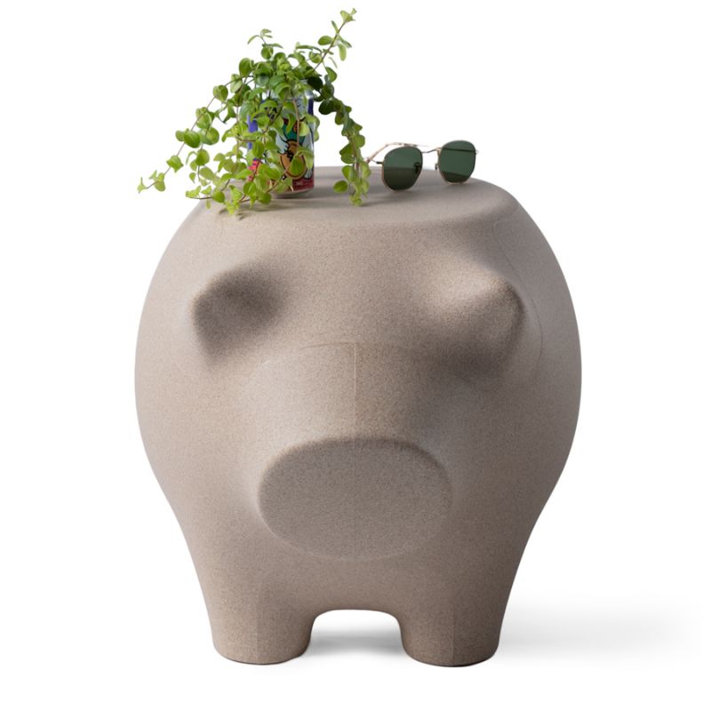 Sidepig可做為邊桌或凳子。它不怕水且,有可愛可拉提的小尾巴,看起來胖嘟嘟但只有5公斤,不費力就可輕鬆地移動它,圓潤及柔順邊緣適合小孩使用。