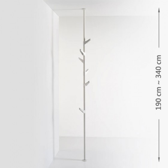這個精心設計的落地-天花板衣架由荷蘭的Van Esch公司製造。自1972年以來,Van Esch公司一直生產高品質的衣架,雨傘架,垃圾箱和儲物櫃著名。