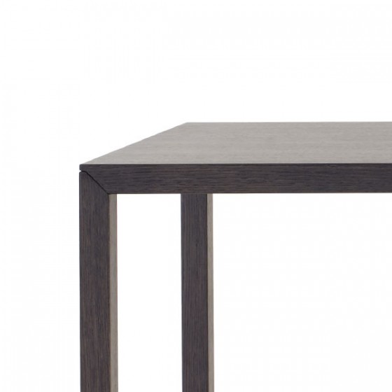 這款視覺效果輕薄的 Slim High Table,具有相當高的穩定性及承受力。是以內層結構使用了獨家的鋼夾層結構,強壯的金屬內裡架構搭配著外層木材的溫潤觸感。而在 Slim High Table 的外觀上是看不到任何一顆螺絲或金屬鋼材質的,桌面與桌腳的連結方式非常美麗及充滿細節感,將整體的極簡設計更加提升。
