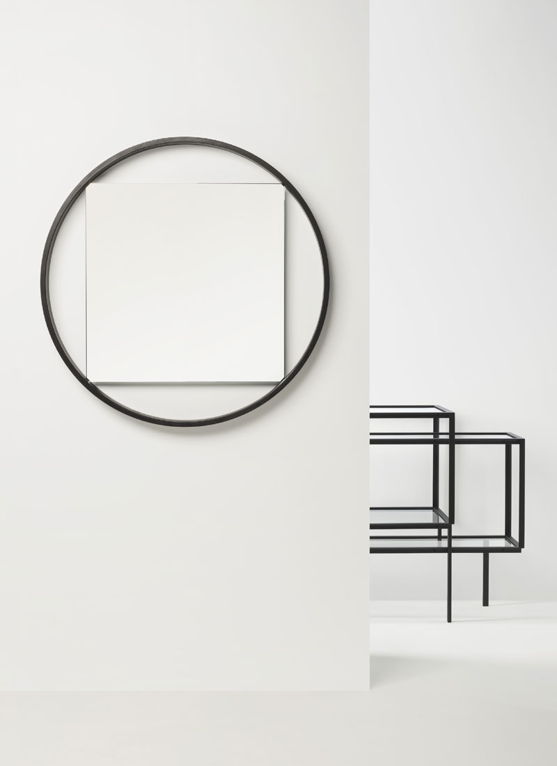 Benno Mirror就是一個良好的代表作品,巧妙且簡單的Benno鏡子以方形鏡子透過頂部的槽滑入框架。以極簡主義和功能性的形式語言真實的詮釋著。