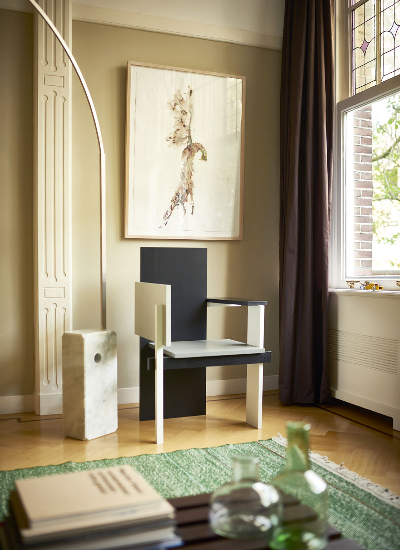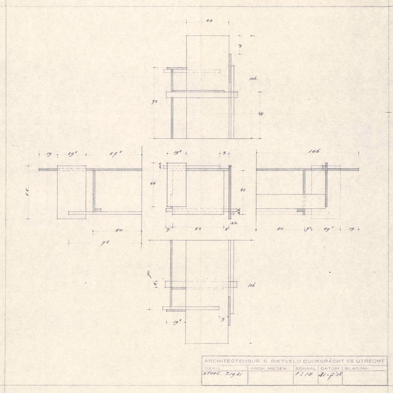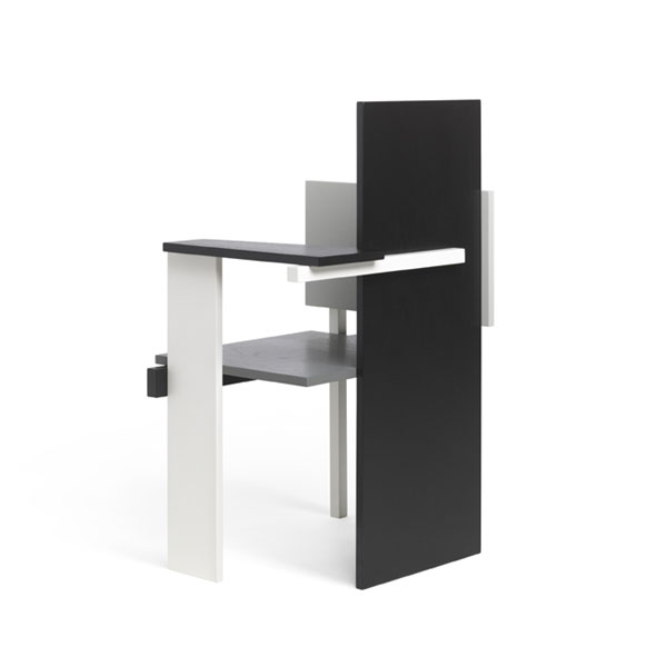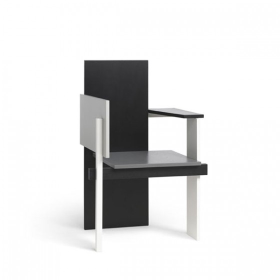 以八塊獨立的木板建造,椅子的前衛設計和標誌性線條代表著設計師Gerrit Rietveld 赫里德·里特費爾德對於 De Stijl 荷蘭風格派運動的基本原則呈現。