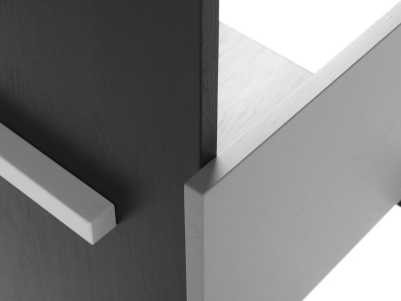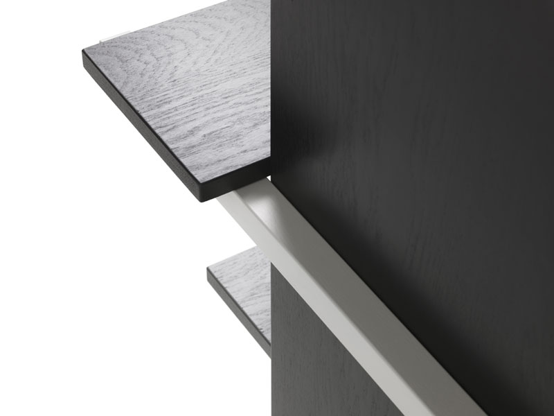 由實心向木板製成,並塗有白色、黑色、灰色的色漆。同時保留了木造結構,讓整體大氣又有特。其扶手能夠放置於左側或右側。