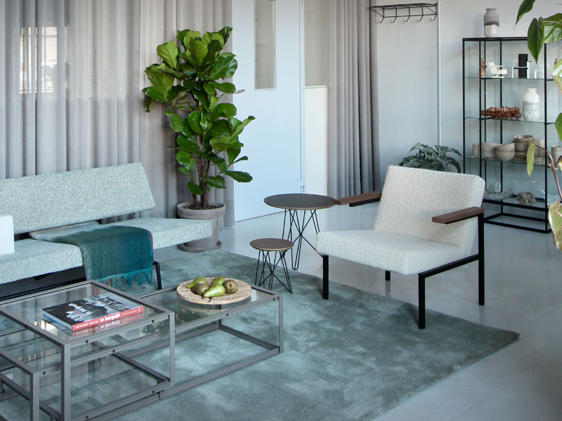 SZ63休閒椅、BZ63單座沙發和SE69餐椅為同系列產品,透過座位區的設計氛圍及腳架的俐落且取直線條可以清楚的感受到Martin Visser的個人設計特色。