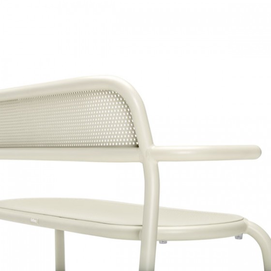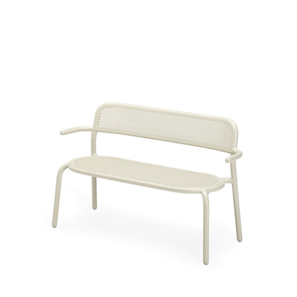 Toni Bankski花園長椅,圓潤趣味的外型深得人心、整體孔洞的設計除了通風良好、具下雨時的排水措施並在之後迅速揮發水氣,同時造就視覺上的透視與輕量化感。