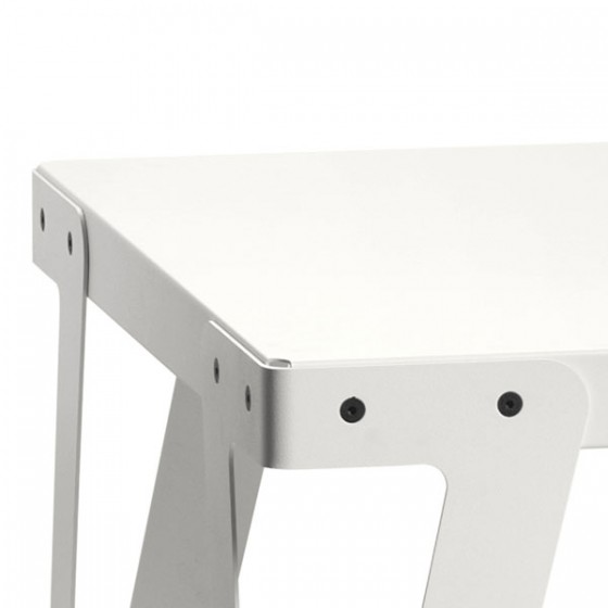 大膽且大器的純鋼材展現桌子高穩定性,同時也具有巧妙的柔韌性並透過品質良好的粉體烤漆增加靈活的使用性;折疊的金屬腳座可透過彎曲去適應不平坦地面,桌腳上的塑膠底座保護著地板不被堅硬的鋼材刮傷。