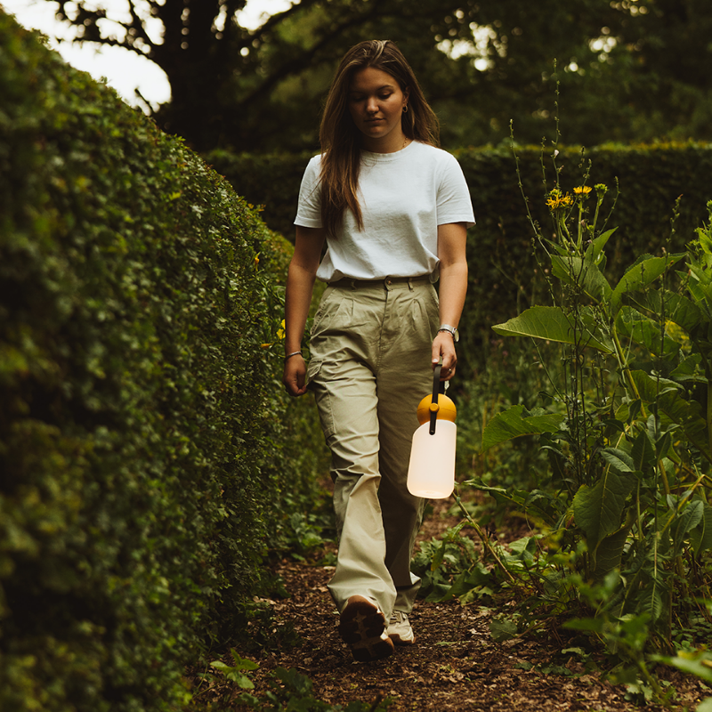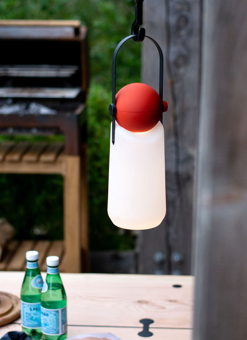 重量輕盈、不僅可方便攜帶還能吊掛於高處使用,利用球體光源及旁邊的旋轉紐調整至合適的光源強度輕鬆營造享受氣氛。