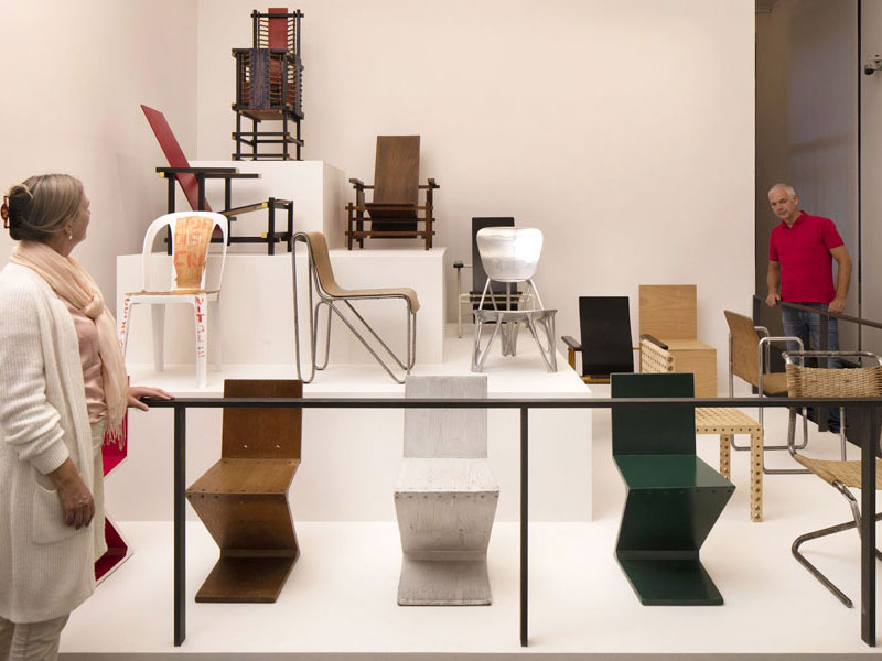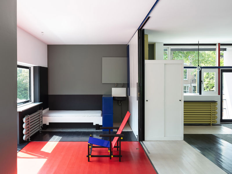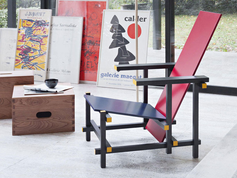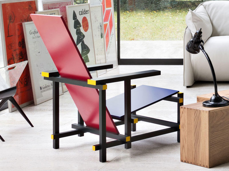 Red Blue Chair紅藍椅,作為荷蘭風格派運動所倡導的新造型主義中最重要的作品之一。由設計師Gerrit Rietveld 赫里德·里特費爾德於1917年所設計,具強烈的理性主義及幾何雕塑風格。透過使用平面與相交的單色空間來詮釋空間組織的哲學。