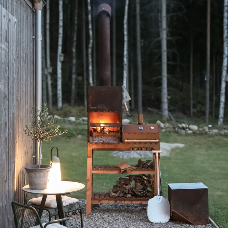 從準備木材開始、生火,在戶外烤箱裡做一些好吃的食物、和家人朋友聊天,同時享受背景中劈啪作響的柴火白噪音。