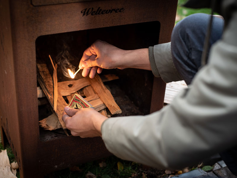 從準備木材開始、生火,在戶外烤箱裡做一些好吃的食物、和家人朋友聊天,同時享受背景中劈啪作響的柴火白噪音。