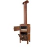 特別的雙層設計,因此讓煙霧可通過外箱(燒木材區)與內箱(食材區)達成全方位的熱源,也因有煙囪爐管的設計讓煙霧遠離火源散出,烤箱內的食物並不會與煙霧接觸,更不會影響到使用上的困擾及造成身體的不適。