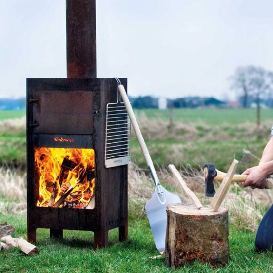 這款獨一無二的多功能戶外烤箱配有烤架、披薩石、披薩鏟子、手套及鑄鐵烤盤(全部包括)。