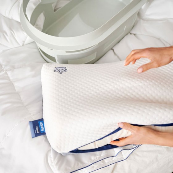 Cloud Pillow除了可防過敏及易於清洗維護,枕頭外部的100%滌綸材質可拆卸清洗(機洗水溫60度以下適用)