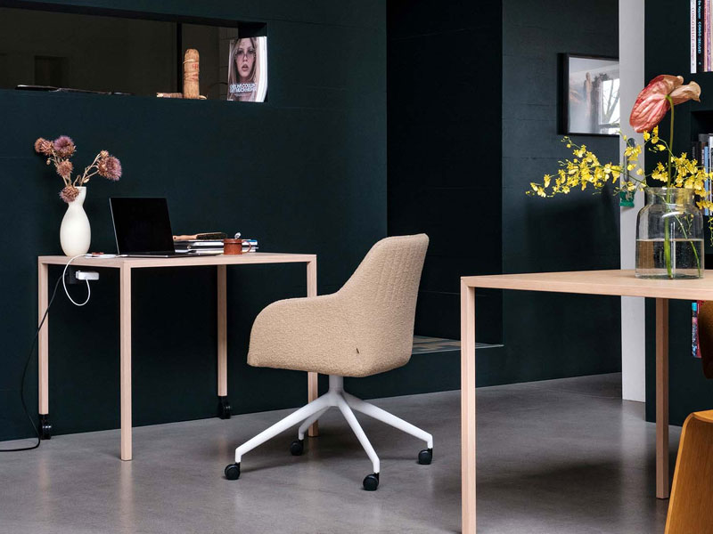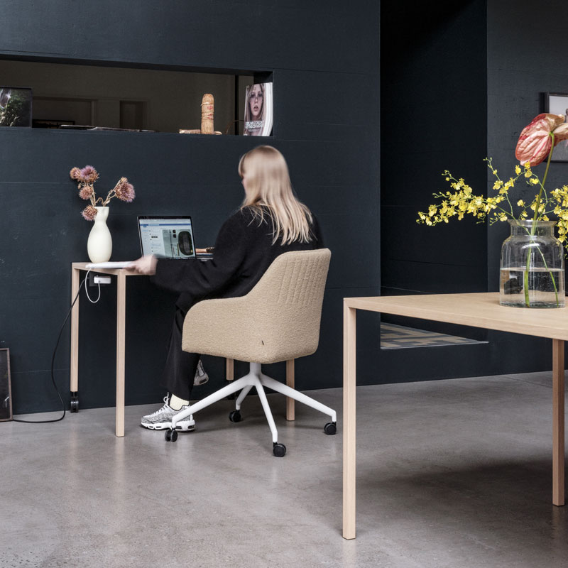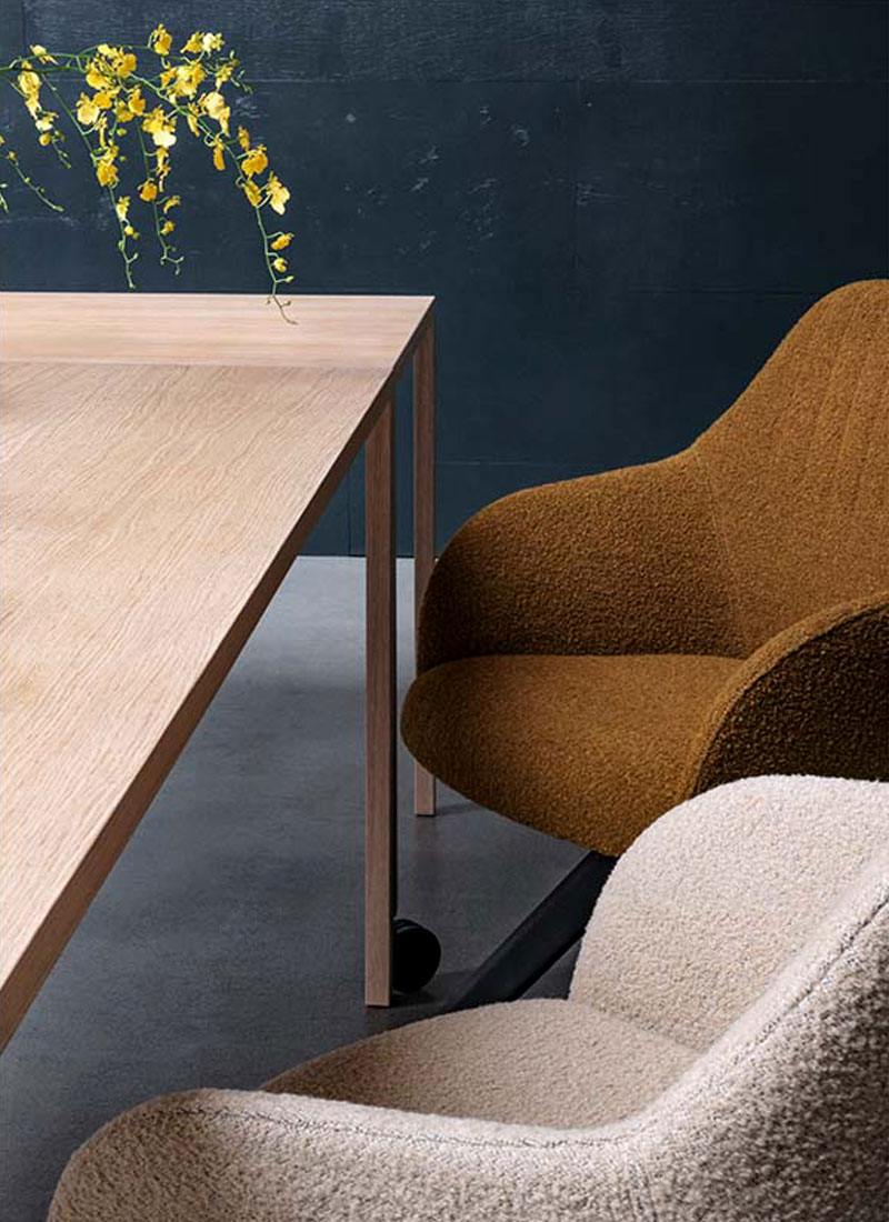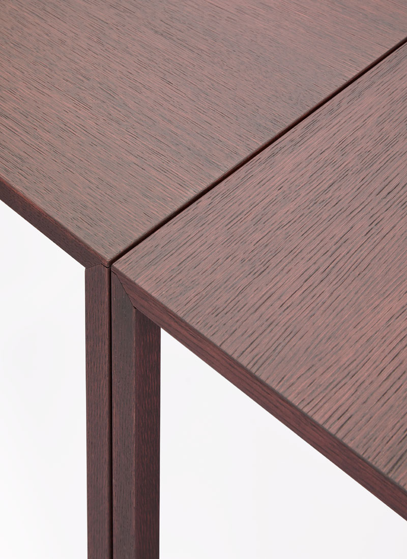 是以內層結構使用了獨家的鋼夾層結構,強壯的金屬內裡架構搭配著外層木材的溫潤觸感。而在 Slim Table 的外觀上是看不到任何一顆螺絲或金屬鋼材質的,桌面與桌腳的連結方式非常美麗及充滿細節感,將整體的極簡設計更加提升。