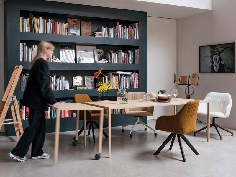 平常需要獨立空間、不需要特別廣大尺寸的長桌用途時,只要將這款帶有輪子的靈活獨立配件桌拉開,即可擁有額外的使用。