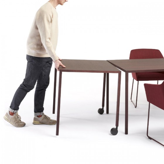 因為桌子內部的使用鋼夾層結構,因此當需要與Slim Table共同使用時只要將兩張桌子(輪朝內)輕輕合併即可讓磁鐵相互吸附、良好的連結及穩定兩個桌子。